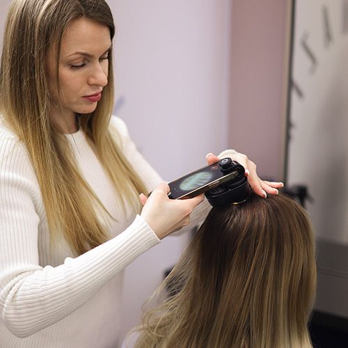 Коли люди приходять з проблемою випадіння, ми проводимо глибинне опитування. Збираємо анамнез, включно зі станом здоровʼя першого і другого покоління, наявність алергій, перевіряємо шкалу депресії та тривоги, розбираємо рутини. Зокрема ті, що стосуються догляду за волоссям: частоту миття, продукти тощо.