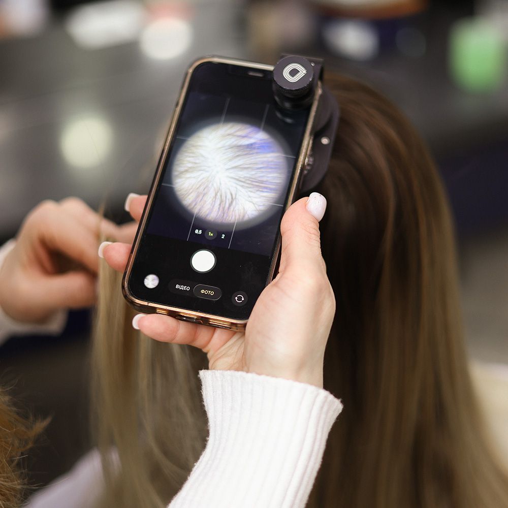 Коли люди приходять з проблемою випадіння, ми проводимо глибинне опитування. Збираємо анамнез, включно зі станом здоровʼя першого і другого покоління, наявність алергій, перевіряємо шкалу депресії та тривоги, розбираємо рутини. Зокрема ті, що стосуються догляду за волоссям: частоту миття, продукти тощо.